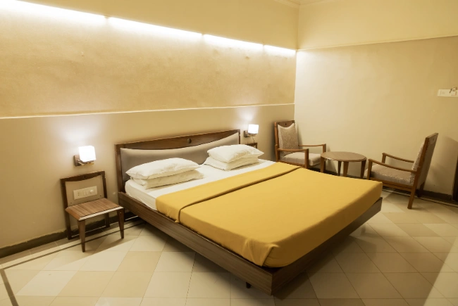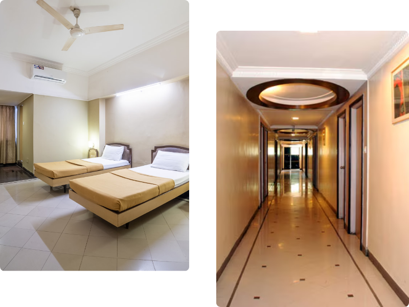 A neatly arranged, centrally air-conditioned in-house Restaurant serves purely sumptuous vegetarian food varieties and lip-smacking delicacies of North Indian, South Indian and Chinese food items. We ensure you get satiating appetite as you can relish with regalement that truly beyond compare.